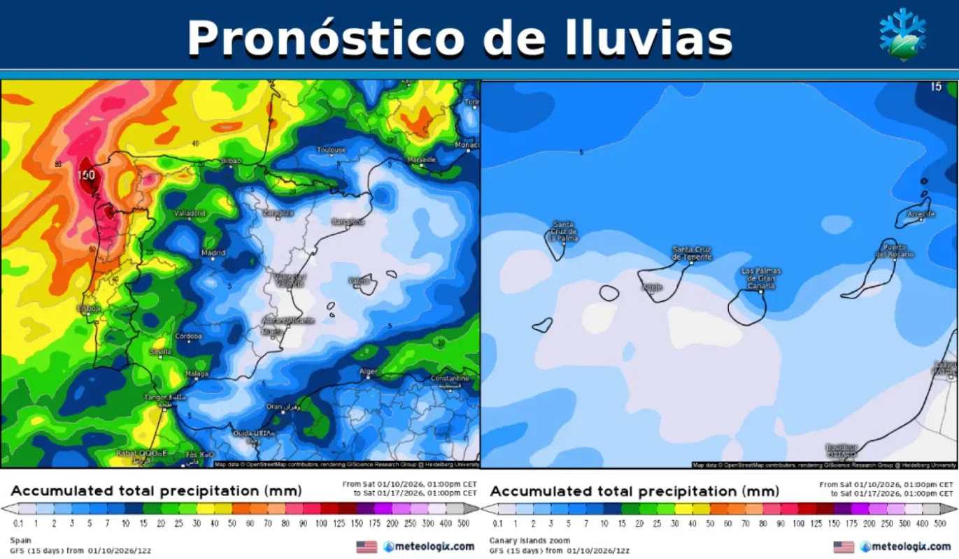 Lluvias previstas en España ☔ durante los próximos 7 días según el modelo GFS