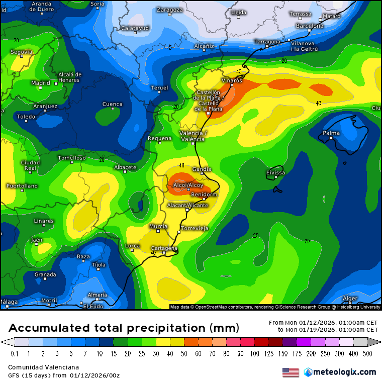 Aumentan las probabilidades de lluvias ☔ abundantes sobre la Comunidad Valenciana a medio plazo