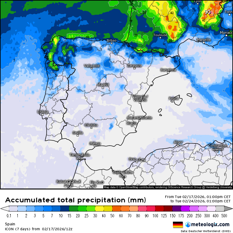 Estas son las lluvias ☔ previstas en España durante los próximos siete días según el modelo alemán