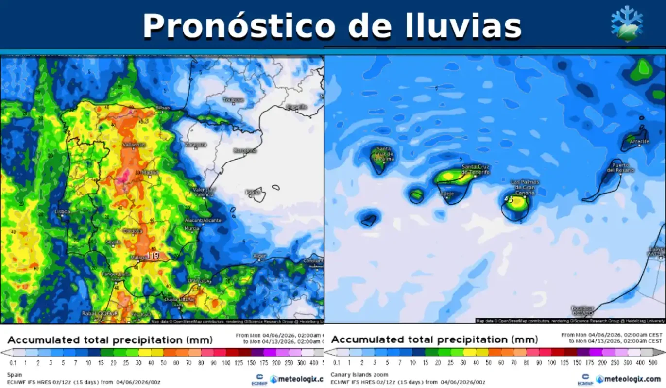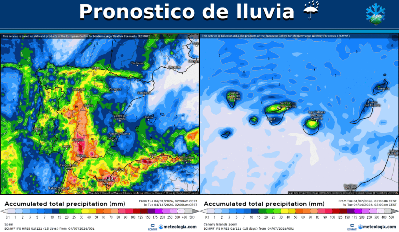 Pronóstico de lluvias ☔ en España durante los próximos 7 días según el modelo europeo (ECMWF)