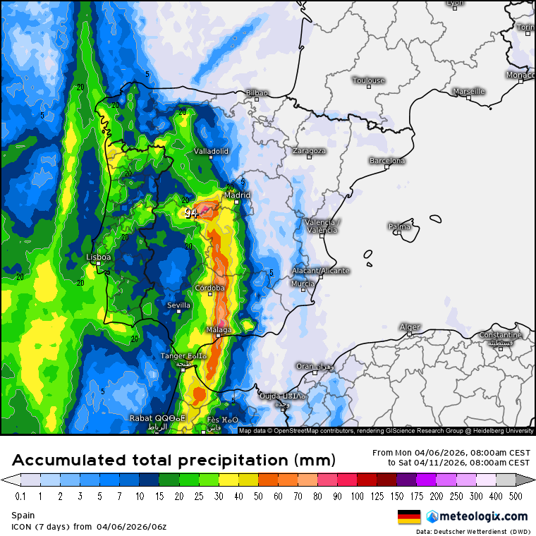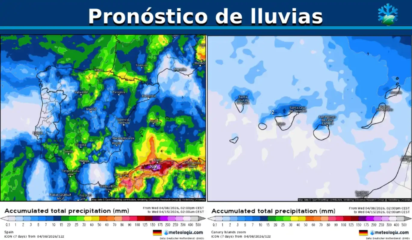 Actualiza el modelo alemán: así van a descargar las nuevas lluvias ⛈️ y tormentas sobre España durante los próximos 7 días