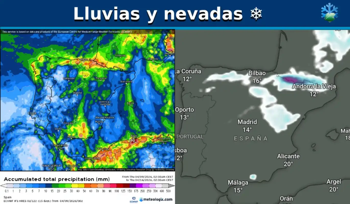 Así va a llover ☔ y nevar ❄️ en España durante los próximos días según el modelo europeo (ECMWF)