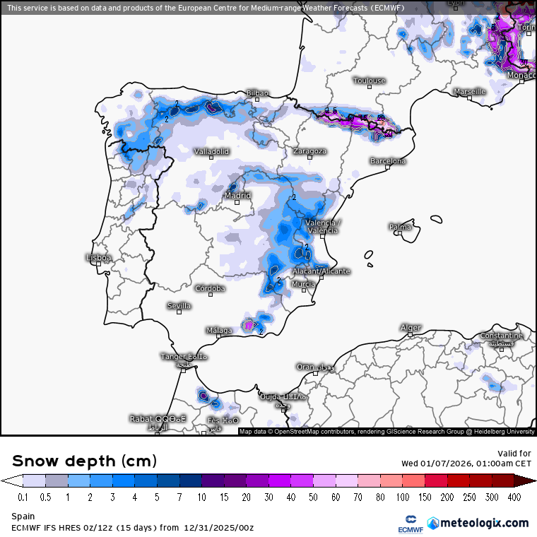 Así dibujan las nevadas ❄️ sobre España hoy los modelos GEM, GFS vs ECMWF; ¿cuál lo pronostica mejor?