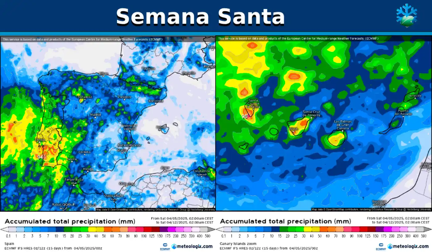 Los modelos meteorológicos nos van confirmando que vamos a seguir con una primavera meteorológica muy lluviosa en la mayor parte de España.