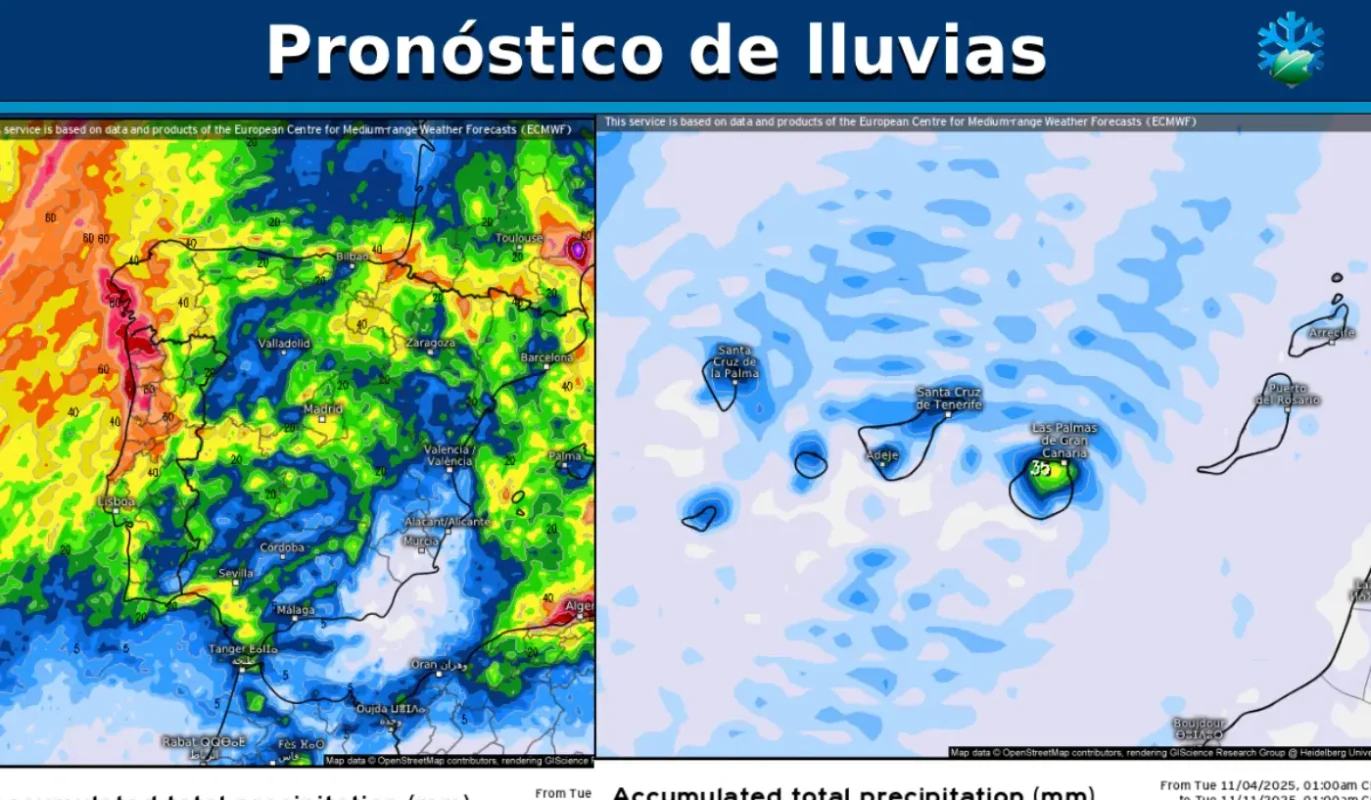 Los mapas de precipitación total acumulada nos muestran cómo se extienden estas precipitaciones por buena parte de nuestra geografía.