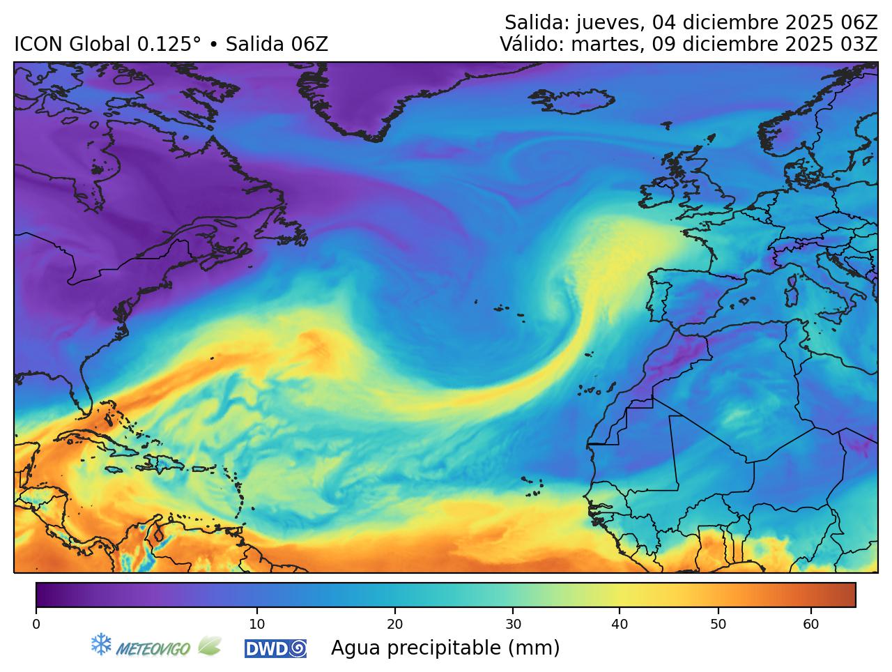 Estos ríos de humedad potencian las precipitaciones, que serán localmente fuertes en algunas regiones orientadas al Atlántico, como Galicia.