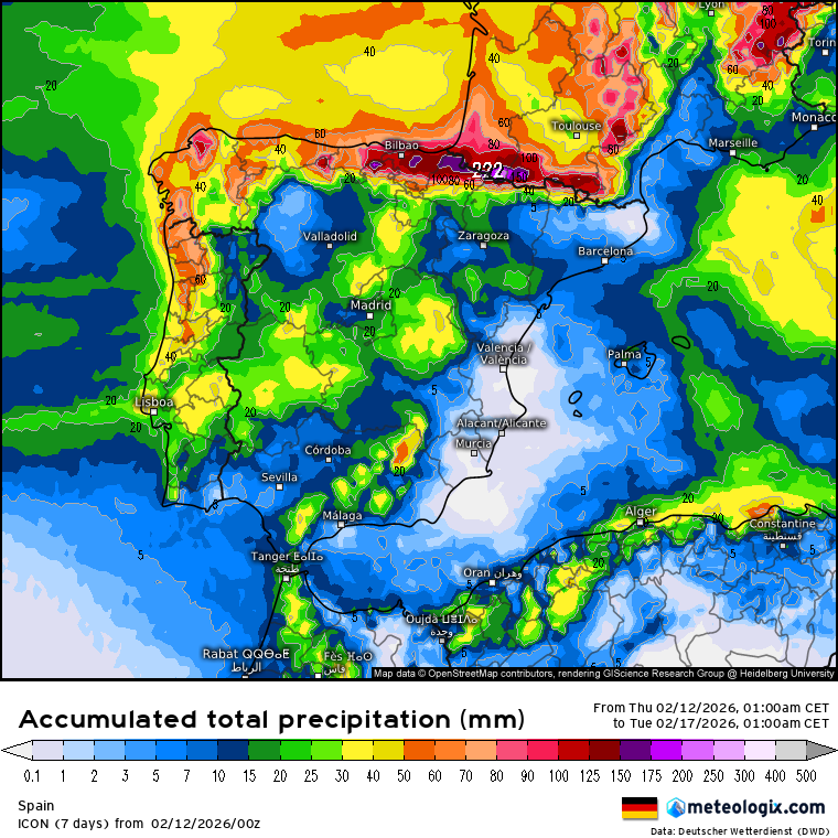 Después detectamos los vientos más virulentos en el Mediterráneo, con velocidades que en algunos puntos van a superar los 150 kilómetros por hora.