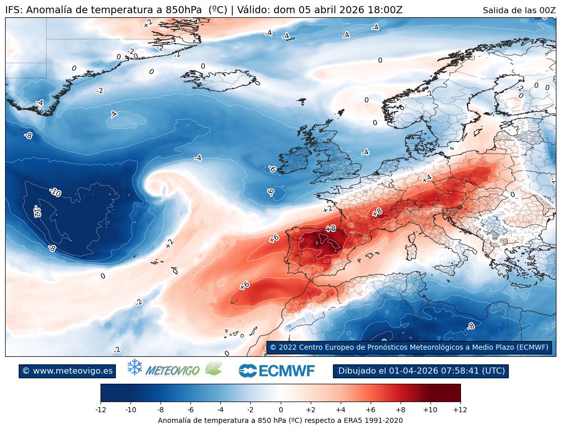 En este análisis te voy a mostrar los mapas de anomalías térmicas previstos para el próximo domingo.