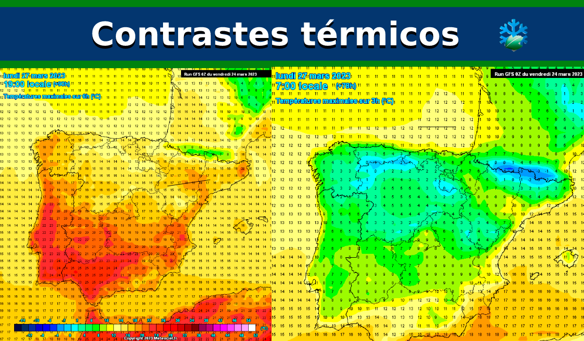 El próximo domingo a las 4 de la tarde, cuando el sol ya ha incidido bastante sobre la superficie y se alcanzan temperaturas próximas a los valores máximos, las diferencias entre el norte-noroeste, y otras regiones del país, van a ser muy importantes.