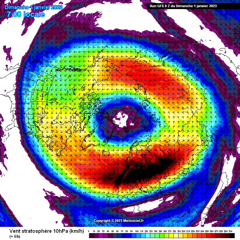 Vientos en la estratosfera al comienzo del mes de enero del 2023