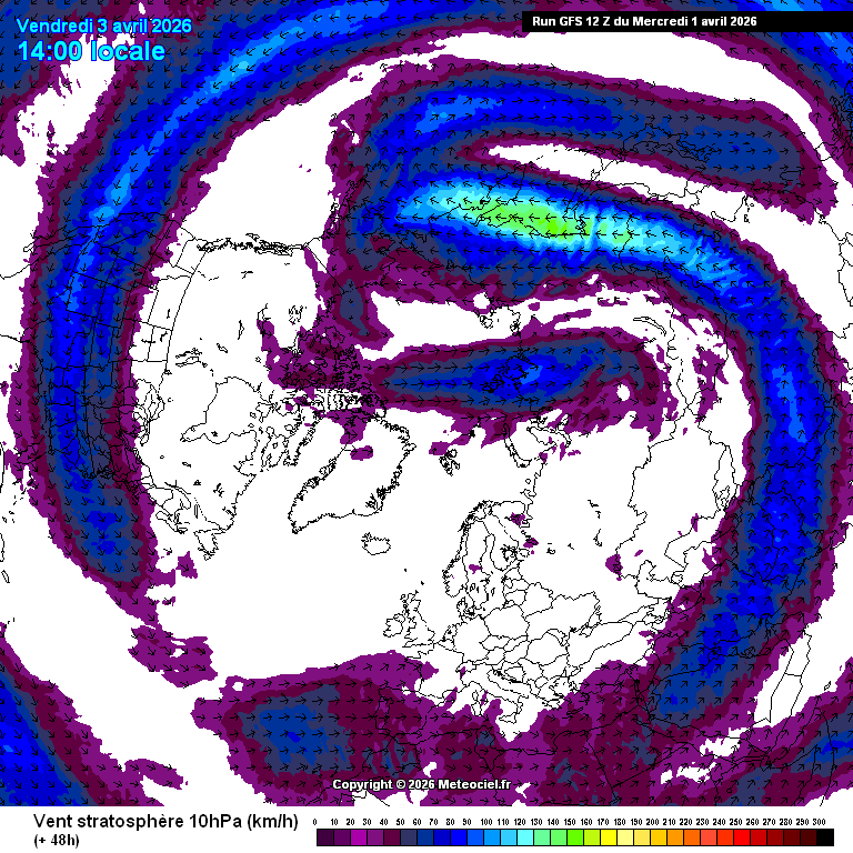 En este pronóstico para para mañana podemos detectar la estructura ya muy debilitada del vórtice polar estratosférico.