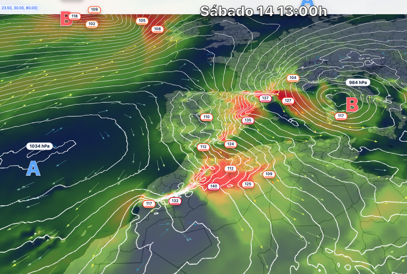 La borrasca se va a profundizar mucho sobre el Mediterráneo, generando vientos muy violentos sobre amplias regiones del país.