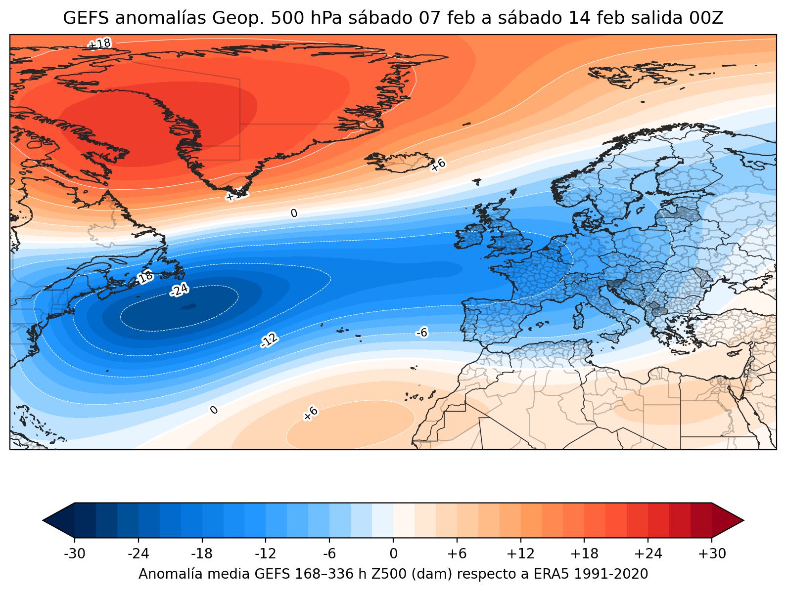 Pero lo que puedes detectar en el mapa superior de anomalías, es un refuerzo del bloqueo en la zona de Groenlandia de cara a la segunda semana de febrero.