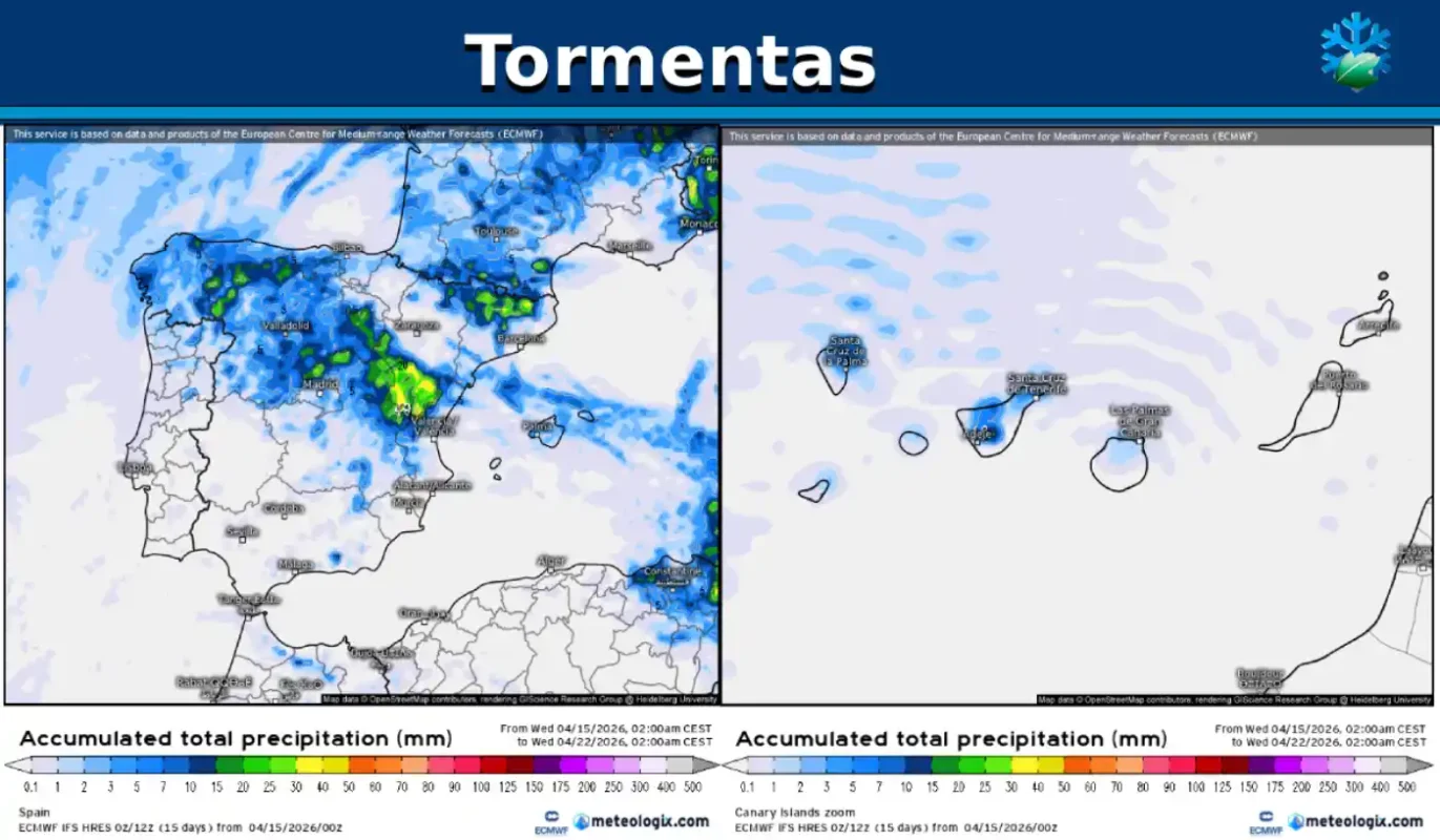 En este análisis te voy a mostrar los mapas de precipitación total acumulada a 7 días del modelo europeo (ECMWF). En ellos vas a ver la huella de las tormentas en el interior peninsular.