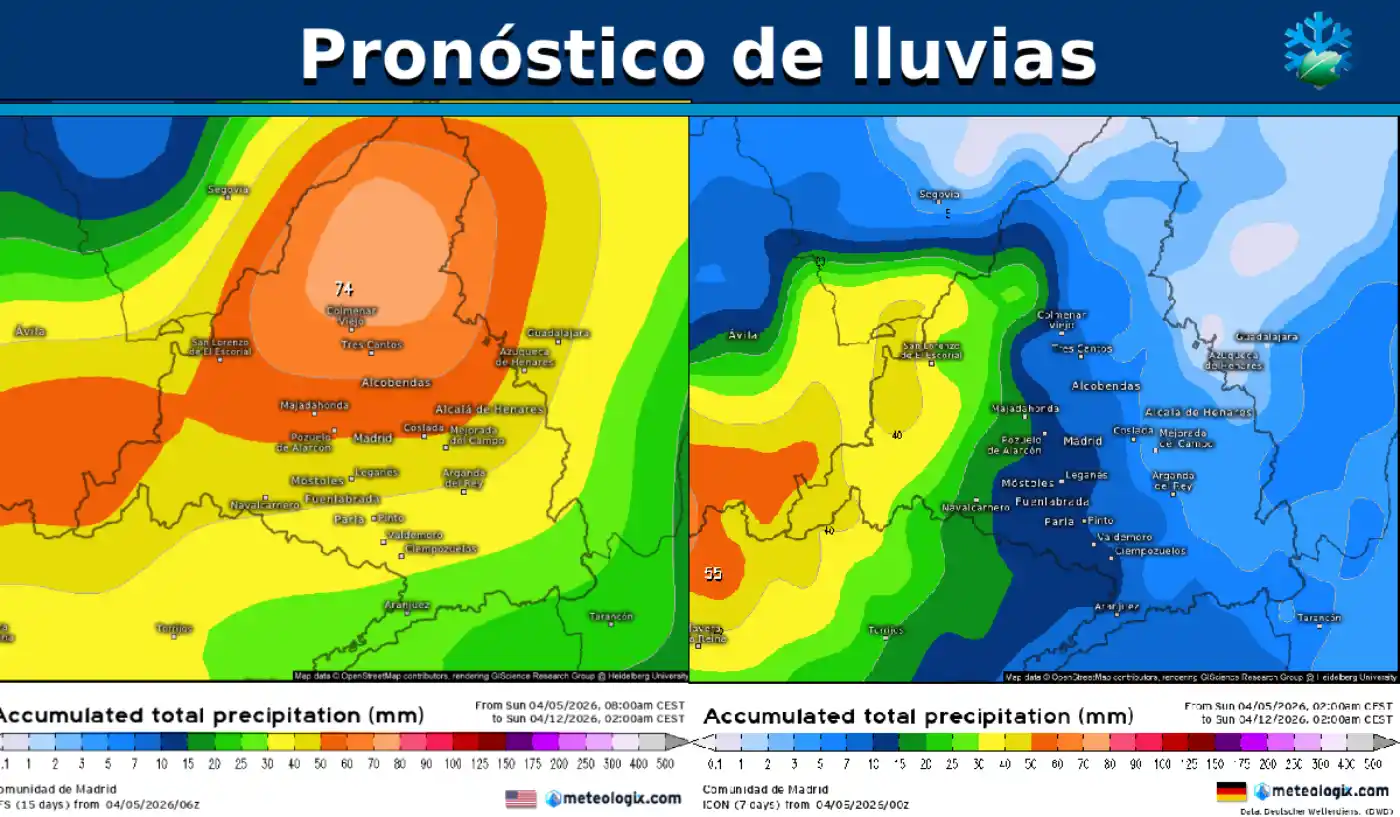 En este análisis te voy a mostrar una comparativa de dos grandes modelos meteorológicos para la Comunidad de Madrid, en lo referente a las lluvias.