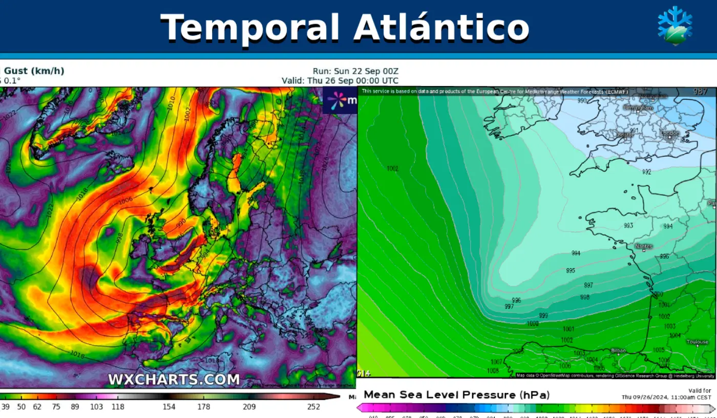 En las últimas actualizaciones los modelos han mostrado incluso una pequeña baja secundaria o satélite, que podría potenciar aún más los vientos desde el mar Cantábrico.