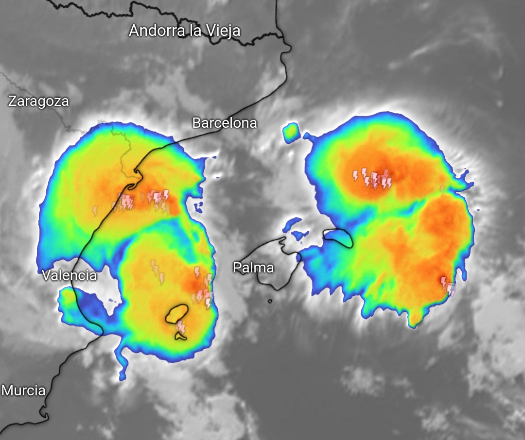 En las imágenes de satélite observamos sistemas convectivos muy maduros desarrollándose sobre el mar, con inyección hacia el interior de una forma bastante enérgica sobre las provincias de Valencia y Castellón. Atención también sobre Tarragona.