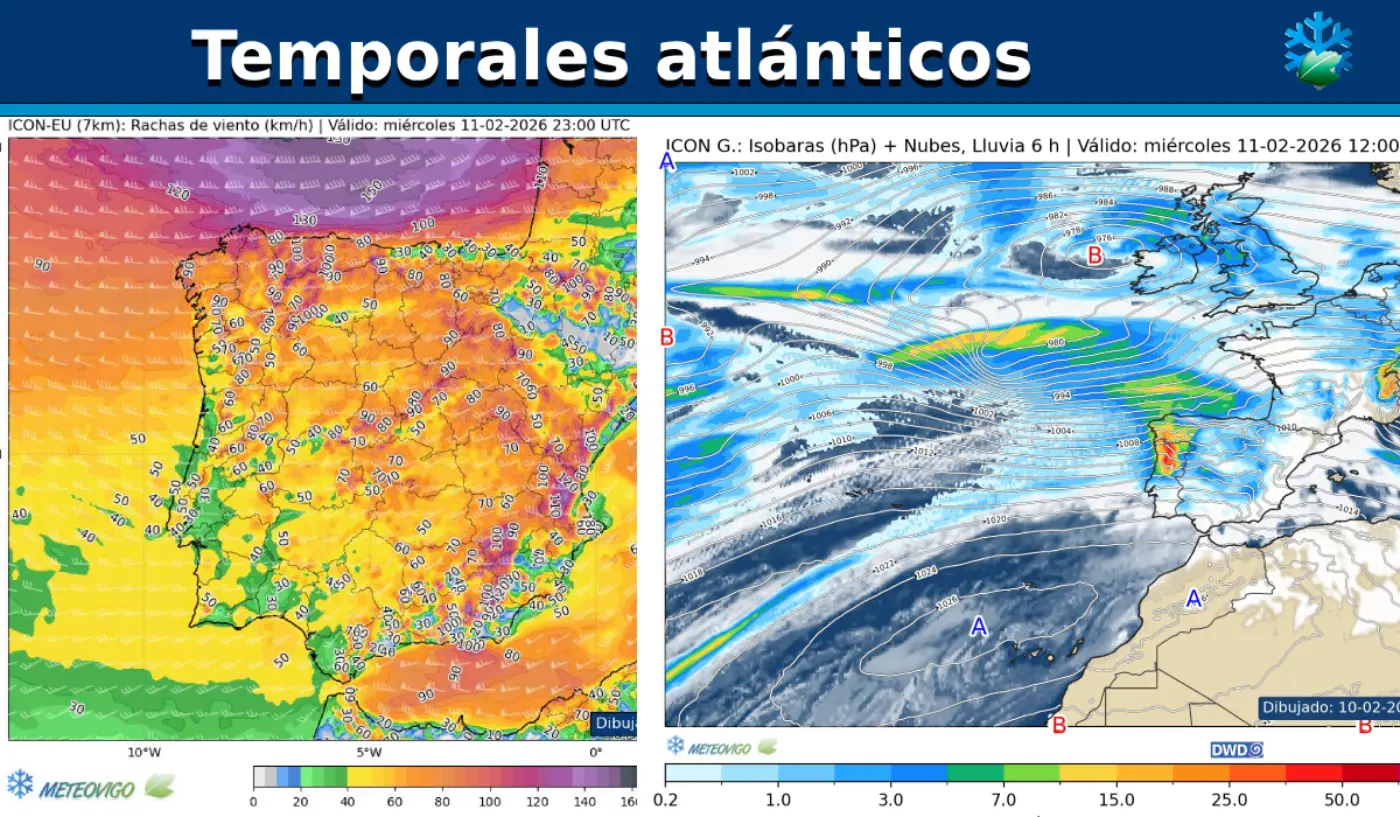 Obviamente, además de este intenso oleaje y fuertes vientos, la borrasca dejará abundantes precipitaciones en amplias regiones de nuestra geografía.