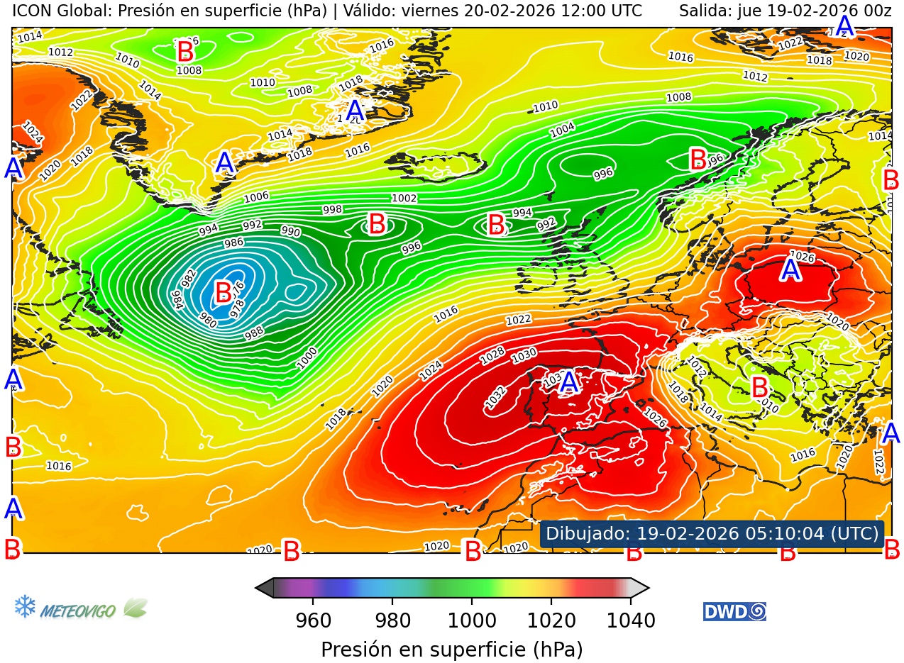 El anticiclón dominará hasta ese momento, pero las borrascas atlánticas aún reclamarán su terreno, evitando que el anticiclón se quede con nosotros mucho tiempo.