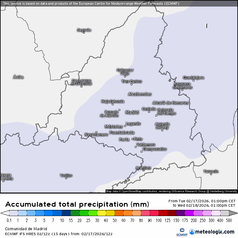 En el siguiente mapa vas a ver una secuencia animada que dibuja las precipitaciones totales acumuladas en la Comunidad de Madrid durante el periodo analizado.