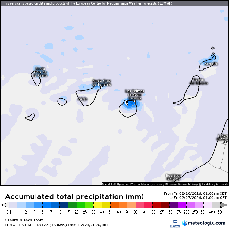 También te voy a enseñar cómo otros modelos dibujan una trayectoria que dejaría lluvias abundantes sobre Canarias.