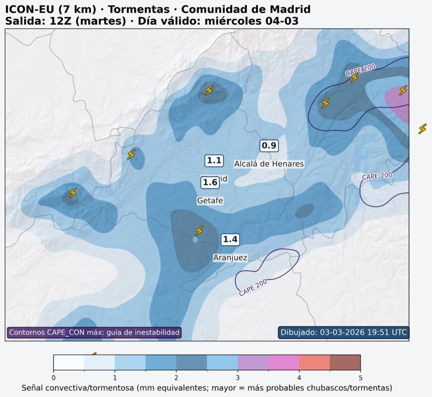 Así van a descargar las lluvias y tormentas ⛈️ sobre la Comunidad de Madrid según el modelo europeo